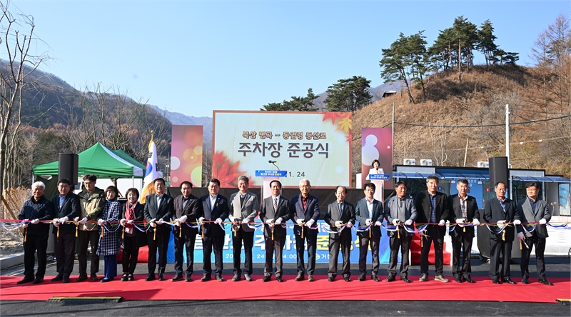 거창군은 지난 11월 24일 북상면 병곡리 주차장에서 구인모 군수를 비롯한 도의원, 군의원, 지역사회 단체장 등 내빈과 주민 100여 명이 참석한 가운데 북상 병곡~동엽령 등산로 주차장 준공식을 개최했다.이날 준공식은 북상면 풍물패의 식전 공연을 시작으로 경과보고, 기념사와 축사, 색줄 자르기, 기념 촬영 순으로 진행됐