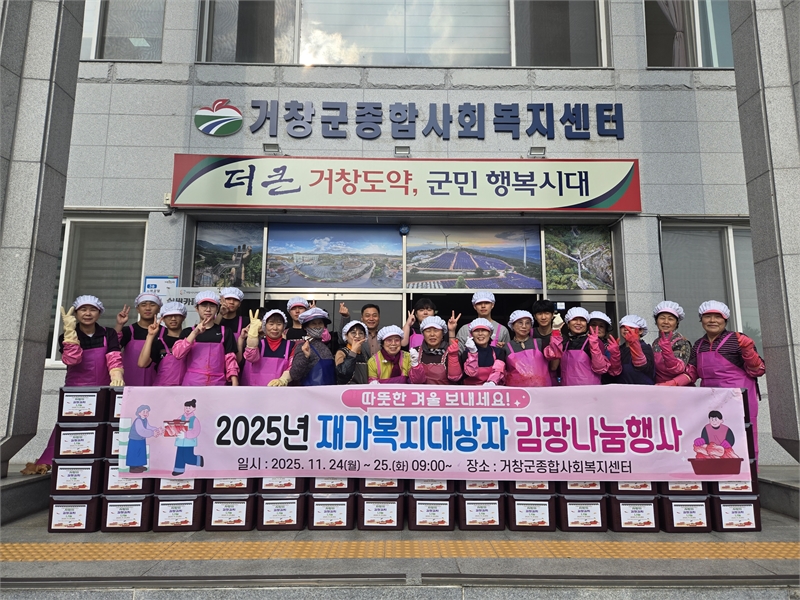 거창군은 지난 1월 24과 25일 이틀간 거창군 종합사회복지센터에서 재가복지대상자 247세대에 김장김치 1,600kg을 담가 전달하는 ‘사랑의 김장 나눔 행사’를 진행했다.이번 행사는 겨울철을 대비해 어려운 이웃들의 건강한 겨울나기를 위한 행사로, 한사랑봉사회 30여 명, 관내 고등학교 학생 12명 등이 참여하여 함께
