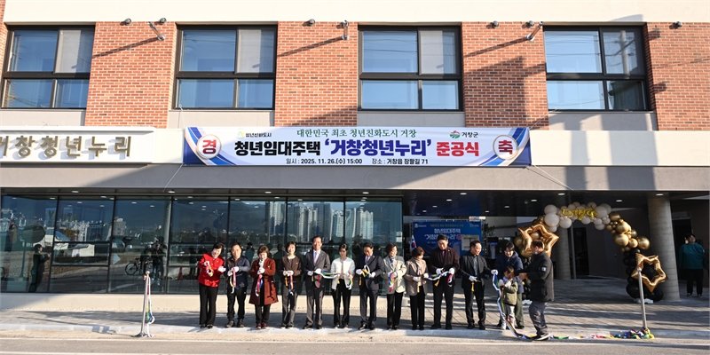 거창군은 지난 11월 26일 구인모 군수, 이재운 거창군의회 의장, 군의원들을 비롯한 입주민 및 청년단체와 주민 등 50여 명이 참석한 가운데 거창군 첫 청년임대주택 ‘거창청년누리’의 준공식을 개최했다.민선8기 공약사업인 거창 맞춤형 청년임대주택 건립 사업은 경상남도 지방소멸대응기금 광역계정 투자계획에 반영되어, 광역기