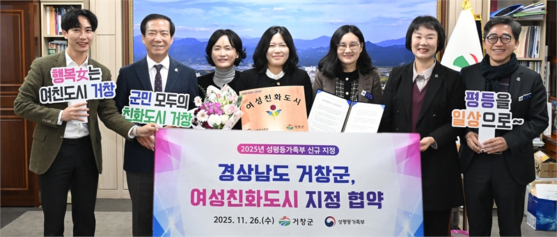 거창군이 성평등가족부로부터 지난 11월 26일 ‘여성친화도시’로 공식 지정됐다. 그동안 성평등 정책 추진 기반 구축, 군민 안전망 구축, 돌봄 환경 조성 등에서 보여준 성과가 인정받은 결과이다.여성친화도시는 지역의 정책 전반에 성인지적 관점이 반영되고, 여성과 아동노약자 등 사회적 약자가 안전하고 편리하게 생활할 수