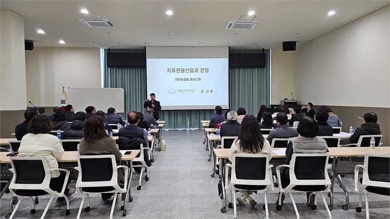 거창군은 지난 12월 17일 미래농업복합교육관 중교육장에서 관내 치유 농장 운영 농가, 웰니스 코디네이터, 치유 산업에 관심 있는 군민 등 30여 명을 대상으로 거창군 치유 산업 육성을 위해 전문가를 초청해 특강을 실시하고 소통간담회를 개최했다.이날 간담회는 2026년 치유 산업 사업계획(안) 안내를 시작으로 치유 산업