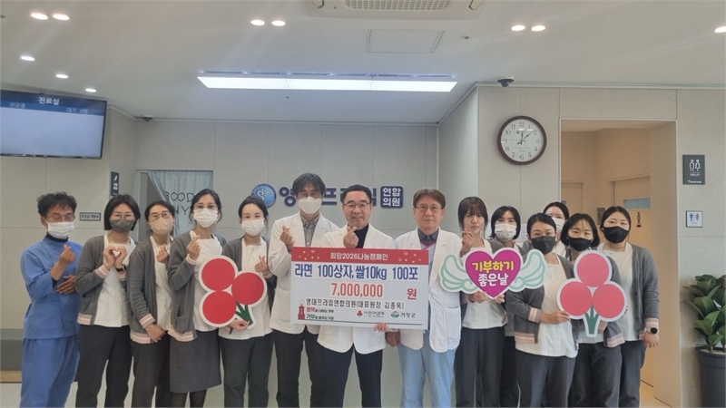 거창군은 지난 12월 1일 영대프라임연합의원(구 영대가정의학과의원)이 지역의 어려운 이웃을 위해 700만 원 상당의 쌀과 라면을 기부하며 훈훈한 나눔을 실천했다고 밝혔다.김종욱 대표원장은 확장 개원의 의미를 지역사회와 함께 나누고자 라면 100상자와 쌀 10kg 100포를 기부하며, “연말 추운 계절을 앞두고 어려움을