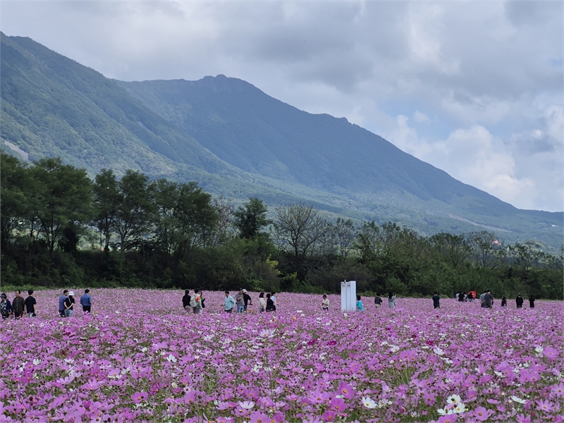 가조온천꽃단지는 연휴 기간 분홍빛․황금빛 코스모스가 만개하며 사진 명소로 큰 인기를 끌었다. 포토존과 커피쿠폰 이벤트, 치유프로그램 체험 부스 운영 등으로 방문객들의 만족도를 높였다.