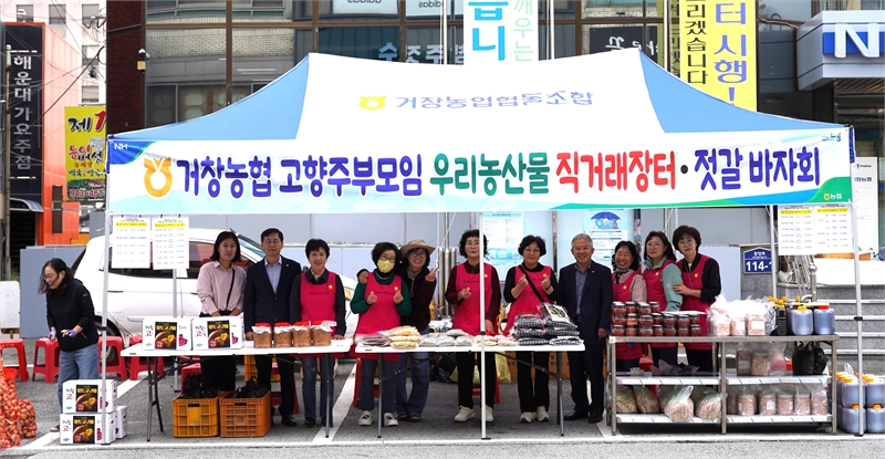 거창농협(조합장 신중갑)은 10월 21일 거창농협 본점 앞에서 거창농협 고향주부모임(회장 이선숙)과 함께 ‘우리 농산물 직거래 장터 및 젓갈 바자회’ 행사를 개최했다.