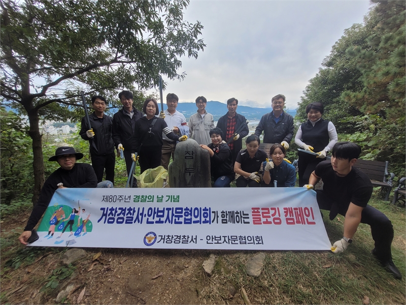 거창경찰서(서장 박경준)는 10월 21일 오후 남하면 양항리 심소정 일원에서 경비안보과 경찰관, 안보자문협의회 회원 등 20여 명이 제80주년 경찰의 날을 맞이하여 자발적으로 참여하여 함께 안전하고 깨끗한 환경을 만들기 위해 쓰레기 줍기 등 플로깅 캠페인을 하였다.