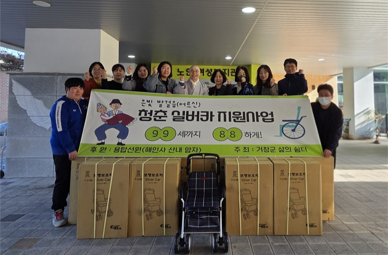 거창군 삶의 쉼터(노인·여성·장애인복지관)는 지난 10월 31일(금), 복지관 운영지원사찰인 해인사 산내 암자 용탑선원 후원으로 ‘은빛 발걸음 어르신 청춘 실버카 지원사업’을 진행했다고 밝혔다.
