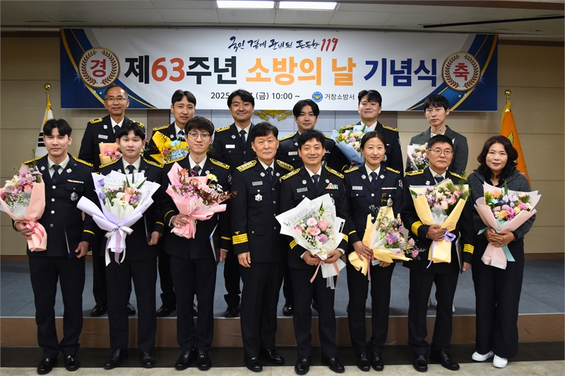 거창소방서(서장 강호봉)는 11월 7일 ‘제63주년 소방의 날’을 맞아 본서 3층 대회의실에서 소방공무원과 의용소방대원 등 100여 명이 참석한 가운데 기념행사를 개최했다.