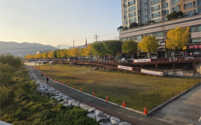 한 주민은 “외지 사람들도 오고 하니까 창포원에서 하면 홍보 효과도 있을 것이고 주차하기도 편리할 텐데, 굳이 이곳에서 해야 하는지를 묻고 싶다”라면서 이곳을 오가면 운동하는 군민들도 통행에도 불편할 것이라고 했다.