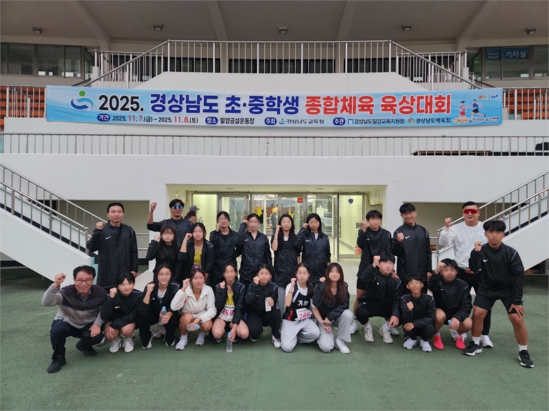 거창교육지원청(교육장 신종규)은 2025년 11월 7일(금)~11월 8일(토)[일부 종목 사전·후 경기], 밀양 및 경남 일원에서 열린 2025 경남초중학생종합체육대회에서 우수한 경기력을 발휘하며 금 97개, 은 61개, 동 49개를 획득하며 군부 종합 1위의 영예를 안았으며, 거창 지역 선수단은 지난해에 이어 2년 연속 군부 종합 1위의 기록을 이어갔다.