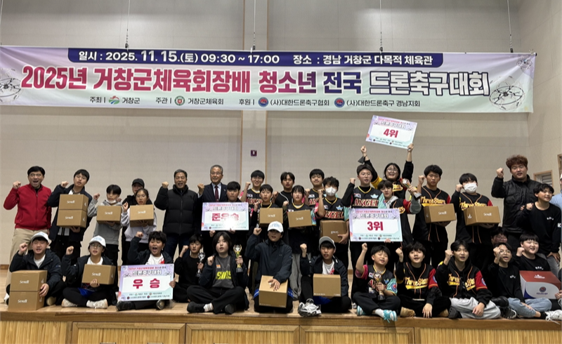 거창군은 지난 11월 15일 거창스포츠파크 다목적체육관에서 거창군체육회 주관으로 ‘2025년 거창군체육회장배 청소년 전국 드론축구대회’가 성황리에 개최됐다고 밝혔다.