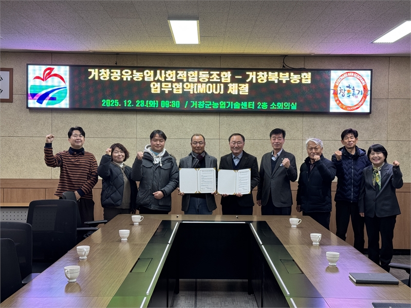 거창공유농업사회적협동조합과 북부농협은 (사)대한한돈협회 거창지부 관계자 등 총 8명이 참석한 가운데, 12월 23일 농업기술센터 2층 소회의실에서 지역 내 축산농가에서 발생하는 축분을 액비로 자원화해 가루 쌀 재배단지에 활용하기 위한 업무협약(MOU)을 체결했다.