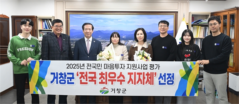 거창군은 보건복지부가 주관하는 ‘전국민 마음투자 지원사업’ 평가에서 전국 최우수 지자체로 선정됐다고 지난 12월 23일 밝혔다.
