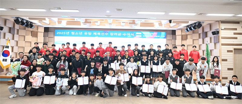거창군체육회는 지난 12월 23일 거창군청 대회의실에서 ‘청소년 우수선수 장려금 수여식’을 개최했다.