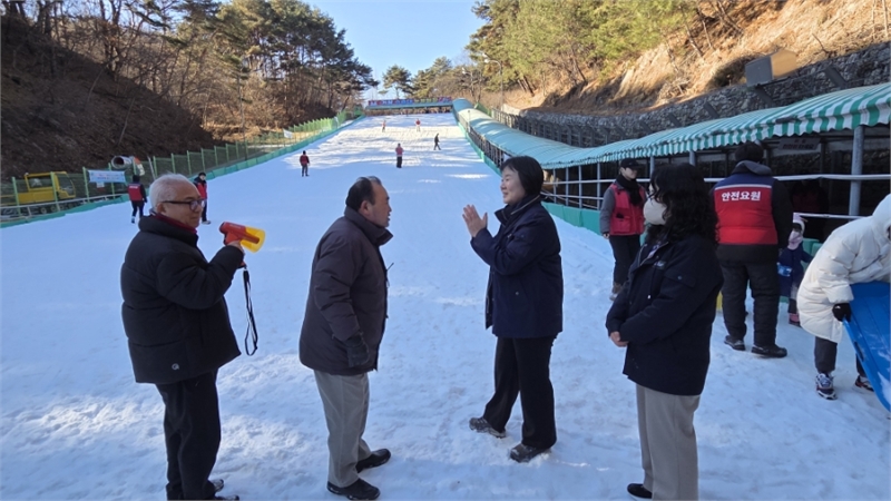 이날 부군수는 관계부서 직원들과 눈썰매장의 무빙워크 작동 상태와 비상 정지 장치 등을 면밀히 살피고, 방문객이 추위를 피할 수 있는 휴게실 난방시설과 소방시설 등을 꼼꼼히 점검했다.
