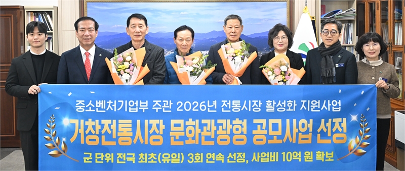 거창군은 거창전통시장이 중소벤처기업부 주관 ‘2026년 전통시장 및 상점가 활성화 지원사업’ 중 문화관광형시장 육성 사업에 최종 선정됐다.