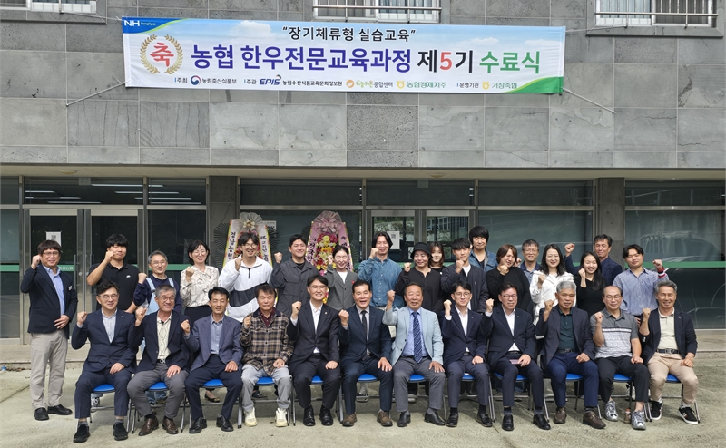 거창축협(조합장 박성의)은 지난 10월 15일 거창축협 한우전문교육센터에서 농협 한우 전문 교육과정 제5기 수료식을 열어 교육생들의 성과를 함께 축하하였다.이번 제5기 교육과정은 농협 경제지주와 농림수산식품교육 문화정보원의 후원으로 지난 5월 13일부터 10월 15일까지 약 5개월간 총 451시간 진행되었으며, 한우개량