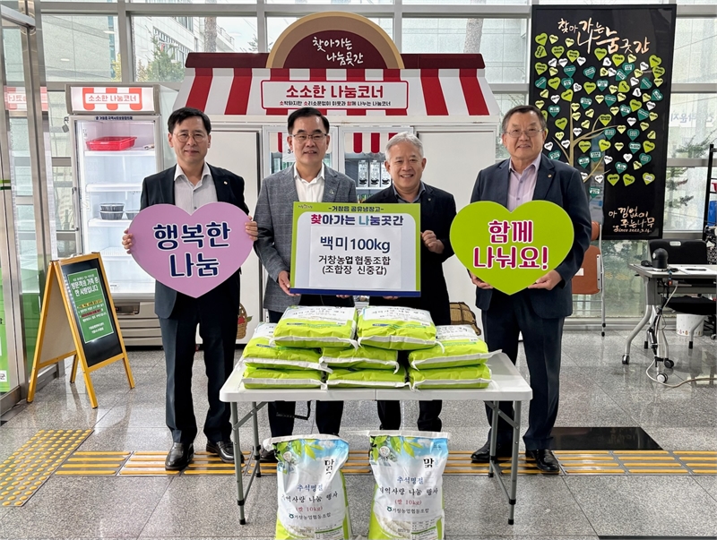 거창군 거창읍 지역사회보장협의체는 지난 9월 19일 추석 명절을 앞두고 거창농업협동조합(조합장 신중갑)에서 지역 내 어려운 이웃을 위해 거창읍행정복지센터 ‘찾아가는 나눔곳간’에 백미 10kg 10포(총 100kg)를 기탁했다고 밝혔다.이번에 전달된 백미는 ‘공유냉장고’를 통해 복지 사각지대에 놓인 저소득층 가정에게 순차