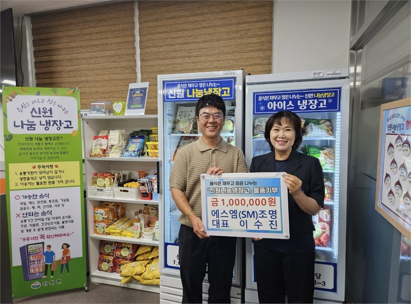 신원면 지역사회보장협의체(민간위원장 박진홍)는 지난 8월 11일 SM조명 이수진 대표가 나눔냉장고에 100만 원을 기부했다고 밝혔다.