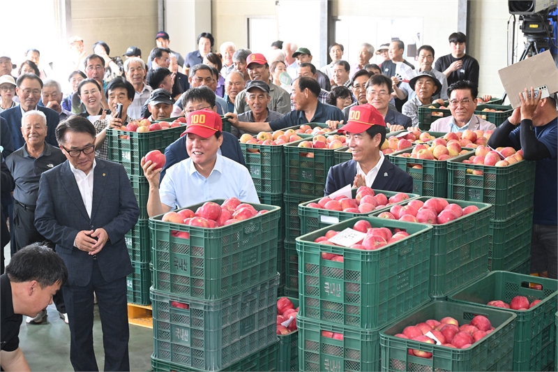 또한 구인모 군수는 “개별 출하가 어려운 소규모, 고령농가를 중심으로 공동 수확단 및 원물 수집단을 운영하여 농가에 편의를 제공하고, 사과 산업 발전에 각종 지원 혜택을 제공하고 있으니, 관내 APC 및 농협에 거창 사과가 납품되어 우리 군이 사과 유통의 중심지로 발전할 수 있도록 적극적으로 참여해 달라”고 당부했다.