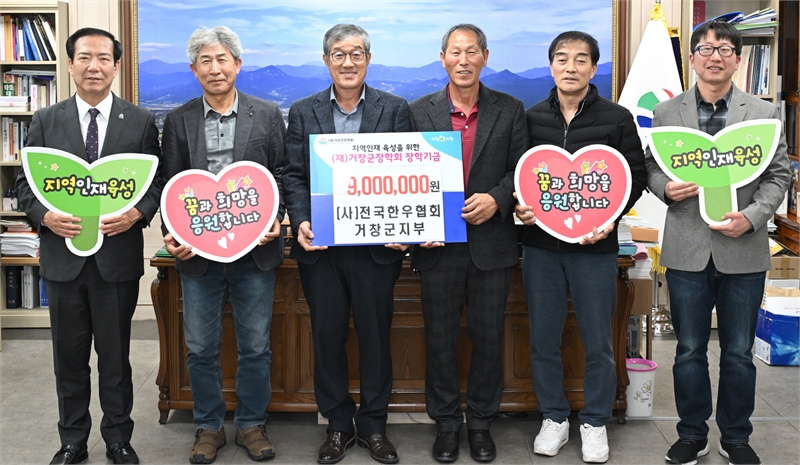 (사)전국한우협회 거창군지부(지부장 이남권)는 거창한마당축제에서 애우 판매관을 운영한 수익금 900만 원을 기탁했으며, 지난 6월에도 500만 원의 장학금 기탁 하는 등 매년 1,000여만 원을 기탁해 지역 인재 육성에 큰 힘이 되고 있다.