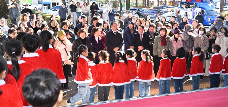 이어 세종유치원(원장 류영이) 원아들이 무대에 올라 깜찍하고 사랑스러운 축하 공연을 선보이며 행사에 활기를 더했다. 아이들의 순수한 모습과 밝은 에너지는 나눔의 기쁨과 희망을 상징적으로 보여주며 캠페인의 의미를 더욱 뜻깊게 되새기는 시간이 됐다.